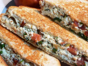 सबसे पहले प्याज, मिर्च और टमाटर को चौप कर लीजिए। अब उसमें घिसा हुआ पनीर, नमक और लाल मिर्च पाउडर मिला कर अलग रख लीजिए। अब दो ब्रैड स्लाइस लें और उस पर मक्खन लगा लीजिए। अब एक ब्रैड में पनीर सामग्री डाल कर ऊपर से दूसरे ब्रैड को ढंक दें। अब इसको सैंडविच टोस्टर में पकाएं और कैचप के साथ परोसे।