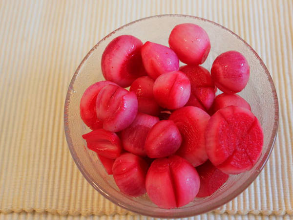 छोटे छोटे प्याजों को सिरके, पानी और नमक के घोल में 3 दिनों तक रख कर गलाया जाता है और फिर जब प्याज खट्टे हो जाते हैं, तब इसे खाया जाता है।