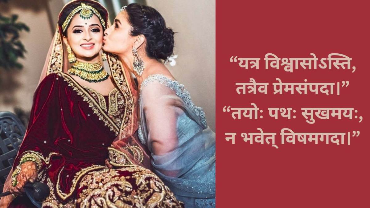 Wedding Wishes For Friends In Sanskrit: शादी सिर्फ दो दिलों का मिलन नहीं, बल्कि दो रिश्तों, दो दुनियाओं और दो परिवारों का सुंदर संगम है। ऐसे पावन अवसर पर दोस्तों को बधाई देना तो बनता ही है, लेकिन अगर शुभकामनाएं संस्कृत में दी जाएं तो उनका अंदाज और भी खास, अनोखा और यादगार बन जाता है। संस्कृत के मधुर शब्द न सिर्फ शुभ संदेश को और भी सकारात्मक बनाते हैं, बल्कि भारतीय परंपराओं और भावनाओं से गहरा जुड़ाव भी बुनते हैं।
